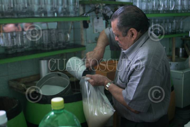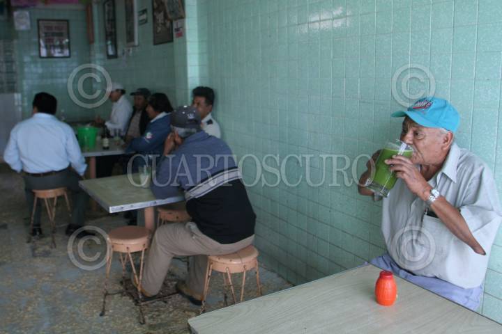 MÉXICO, D.F., 12DICIEMBRE2010.- El pulque, una de las bebidas tradicionales de Mexico al ser conciderado desde epocas prehispanicas como la bebida de los dioses, poco a poco a ido desapareciendo y al igual que dicho nectar, tambien las pulquerias en la ciudad, actualmente so muy pocos los lugares que lo venden como "El templo de Diana" donde acuden desde jovenes hasta adultos para deleitarse con su sabor natural o el famoso "Curado" y pasarse un buen rato. FOTO: ENRIQUE ORDÓÑEZ/CUARTOSCURO.COM