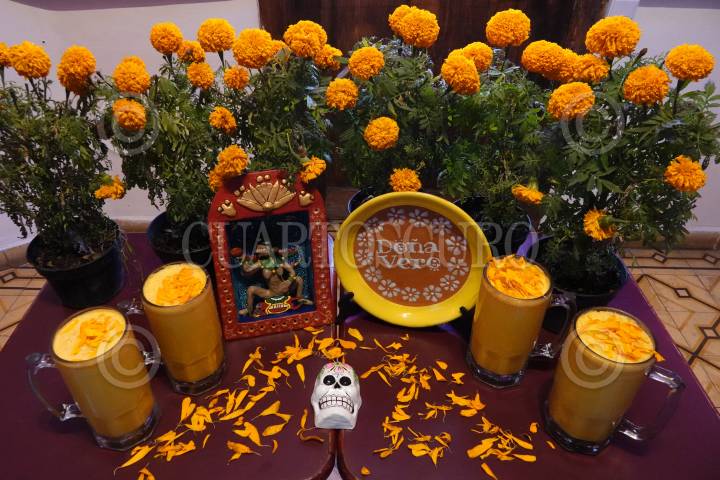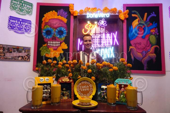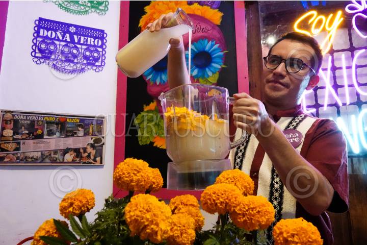 En el marco del festejo de Día de Muertos, el restaurante “Doña Vero” prepara pulque de cempasúchil que lleva flor de cempasúchil hembra de corte que proviene de las chinampas de Xochimilco, pulque blanco de Hidalgo, canela, vainilla, leche condensada y plátano macho, se muele y al servir se colocan flores de cempasúchil
