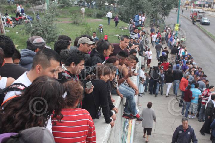 MÉXICO, D.F., 02JULIO2012.- Curiosos observan el accidente donde un hombre perdió la vida tras volcar un camión de pasajeros de la ruta Santa María que circulaba sobre los carriles laterales de la autopista México Puebla. Debido al exceso de velocidad y a que la unidad se quedo sin frenos, el pasado vehículo se proyectó sobre los muros de contención del eje 10 Oriente en los límites de la delegación Tlahuac y el municipio de Valle de Chalco. FOTO: SAÚL LÓPEZ /CUARTOSCURO.COM