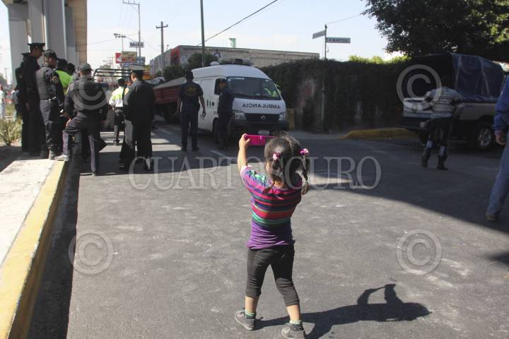 MÉXICO, D.F., 10ENERO2013.- Una niña toma fotografías con un celular de juguete en el área acordonada por peritos de la PGJDF, donde perdieron la vida dos personas en la avenida Tlahuac y la calle de Martos en la colonia Cerro de la Estrella en la delegación Iztapalapa. FOTO: SAÚL LÓPEZ /CUARTOSCURO.COM
