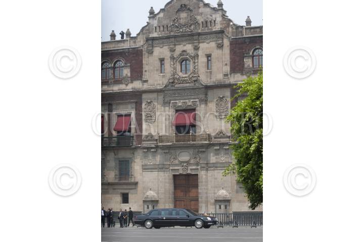 MÉXICO, D.F., 02MAYO2013.- El Auto conocido como la Bestia, sale de Palacio Nacional, donde tuvo reunión el presidente de Estados Unidos Barack Obama. FOTO: JUAN PABLO ZAMORA/CUARTOSCURO.COM