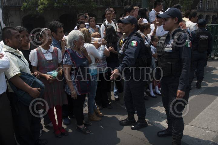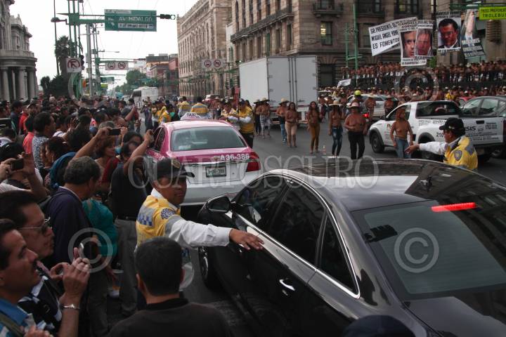 MÉXICO, D.F., 02MAYO2013.- Elementos de la Policia Federal invitan a curiosos a subirse a la banqueta, durante la visita de Barack Obama, presidente de Los Estados Unidos de Norteamérica en Palacio Nacional. FOTO: JUAN PABLO ZAMORA/CUARTOSCURO.COM