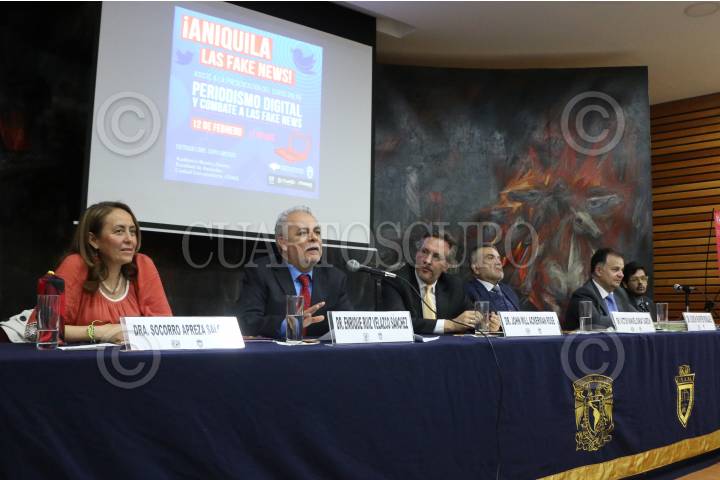 Socorro Apreza, Jhonatan Ackerman, Víctor Manuel Garay, Ulrich Richter y Walter Arellano, encabezaron la presentación del curso “Periodismo Digital y Combate a las Fake News” en Ciudad Universitaria.