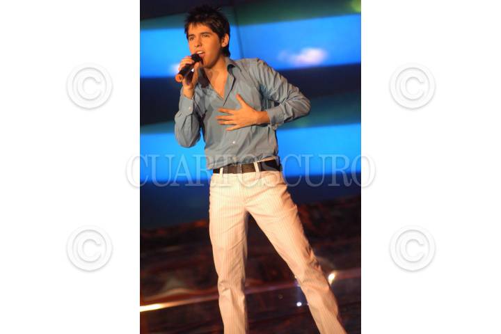 MEXICO, D.F. 22MAYO2005.- Erasmo, alumno de La Academia cuarta generación, durante su interpretación el el decimo tercer concierto. FOTO: /CUARTOSCURO.COM