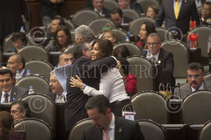 MÉXICO, D.F., 14FEBRERO2013.- La diputada priísta por Sinaloa Francisca Elena Corrales Corrales recibe abrazos por el día de san Valentín durante la sesión ordinaria en San Lázaro. FOTO: JUAN PABLO ZAMORA /CUARTOSCURO.COM