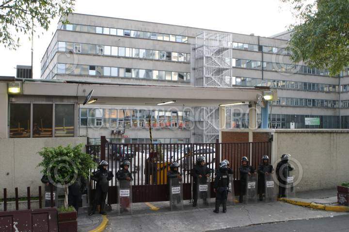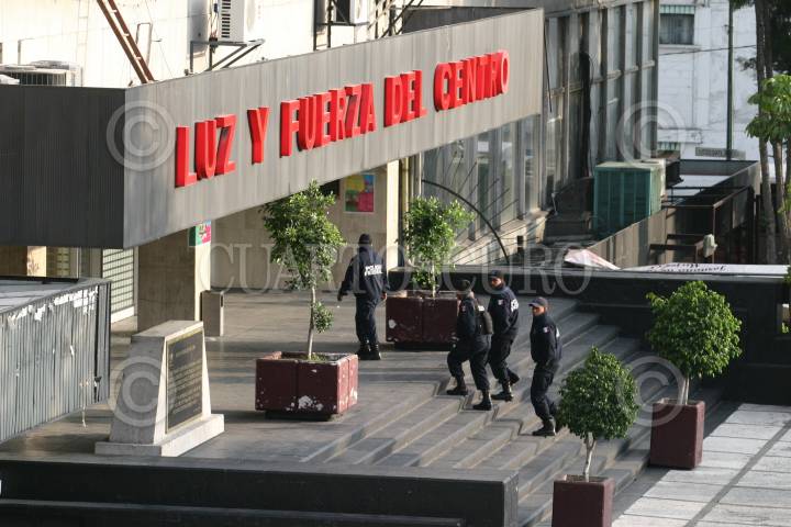 MÉXICO, D.F., 11OCTUBRE2009.- Elementos de la Policía Federal custodian la oficina central de la compañía de Luz y Fuerza del Centro (LyFC) la cual anoche fue ocupada después de un decreto presidencial publicado en el Diario Oficial de la Federación en el que se determina la extinción de ese organismo descentralizado y que será incorporado a la Comisión Federal de Electricidad (CFE). FOTO: RODOLFO ANGULO/CUARTOSCURO.COM