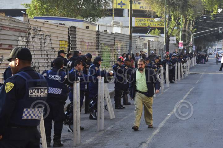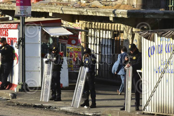 CIUDAD DE MÉXICO, 13FEBRERO2017.- Granaderos de la Secretaria de Seguridad Publica, (SSP) se colocaron sobre la Banqueta, de la calle Niños Héroes en la colonia Doctores para evitar que vendedores se instalen. FOTO: ARMANDO MONROY /CUARTOSCURO.COM