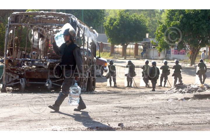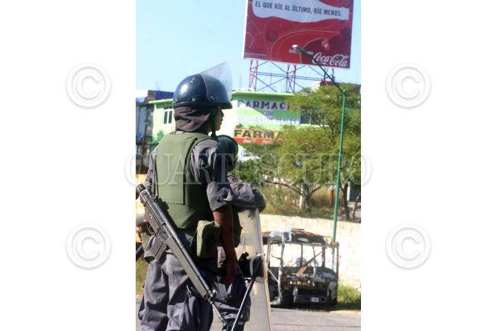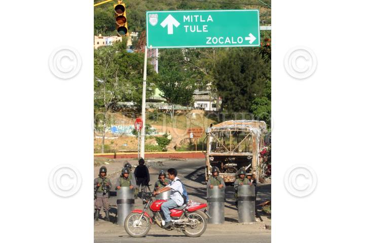 OAXACA, OAXACA 01NOVIEMBRE2006.- Elementos de la PFP custodian las inmediaciones del canal 9, las cuales fueron recuperadas el día de hoy. En la imagen se observan elmentos de la PFP con armas largas y chalecos antivalas. FOTO: CARLOS SALINAS/CUARTOSCURO.COM
