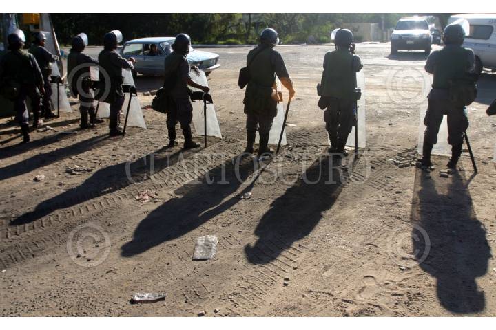 ZAPOPAN, JALISCO, 11AGOSTO2010.- Elementos de la policia federal custodian los alrededores del estadio Omnilife en donde esta noche jugarán las Chivas del Guadalajara contra el Inter de Porto Alegre en la final de ida de la copa Santander Libertadores 2010. FOTO: RODOLFO ANGULO/CUARTOSCURO.COM
