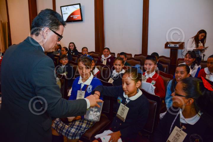CIUDAD DE MÉXICO, 28ABRIL2017.- Se realizó la sesión ordinaria y declaratoria del Décimo Parlamento infantil en la Asamblea Legislativa del Distrito Federal (ALDF). Participaron niñas y niños de escuelas de nivel primaria, para exponer propuestas en materia de programas y políticas públicas, además de ejercer plenamente su participación en las las decisiones de la VII Legislatura. FOTO: MARIO JASSO /CUARTOSCURO.COM