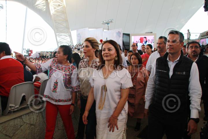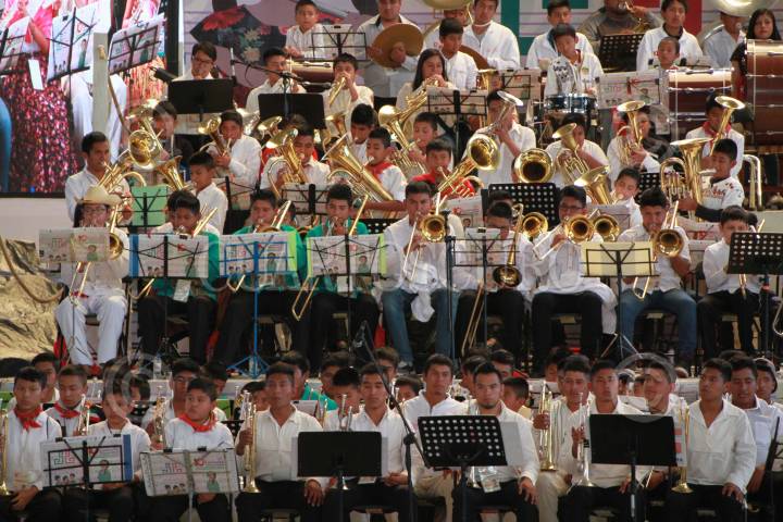 OAXACA, OAXACA, 04DICIEMBRE2017.- Más de mil 300 niños indígenas, provenientes de todo el estado participaron este lunes en la décima edición del Concierto Monumental de Bandas de Viento Infantiles y Juveniles de los Pueblos Indígenas de Oaxaca organizado por la Comisión Nacional para el Desarrollo de los Pueblos Indígenas. El evento se desarrolló en el auditorio Guelaguetza el cual registró un lleno total, la actividad fue encabezada por la directora nacional de la CDI, Nuvia Mayorga y el gobernador, Alejandro Murat. FOTO: ARTURO PÉREZ ALFONSO/ CUARTOSCURO.COM