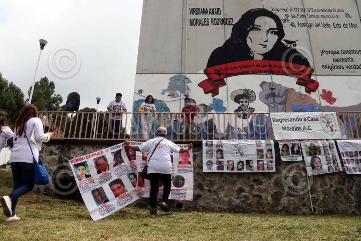 Angelica Rodriguez, madre de Viridiana Morales Rodriguez, desaparecida hace diez años, realizo un evento conmemorativo en la facultad de psicología donde estudiaba, y donde hay un mural con su imagen.