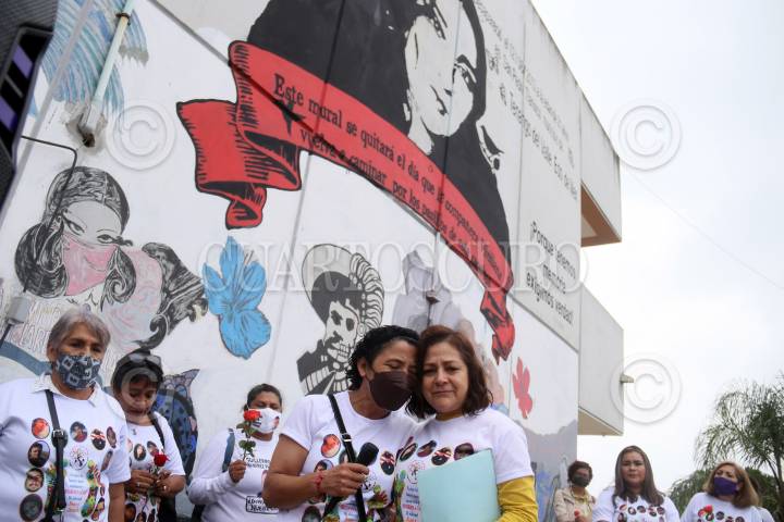 Angelica Rodriguez, madre de Viridiana Morales Rodriguez, desaparecida hace diez años, realizo un evento conmemorativo en la facultad de psicología donde estudiaba su hija, y donde hay un mural con su imagen.