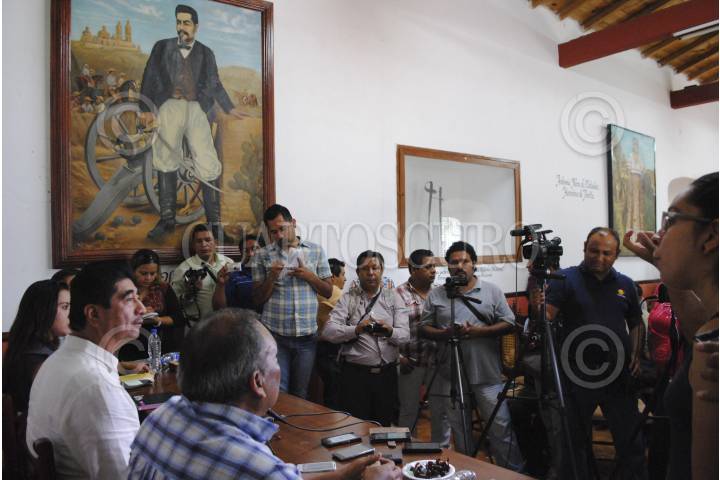 TIXTLA, GURRERO, 26OCTUBRE2015.- El presidente del Consejo municipal Raúl Vega Astudillo, acompañado de la regidora María Natividad Vargas Dircio, María de Jesús Zamudio y del regidor Cesáreo Muñoz Vázquez, dieron una conferencia de prensa a medios de comunicación en la que anunciaron que la administración le fue hereda sin dineros con déficit de 84 millones y 36 millones de laudos laborales, en seguridad no hay elementos de la policía municipal para garantizar la seguridad en el municipio y ha hecho un llamado al ejército, a la policía federal para que lo apoyen en la tarea de seguridad y han exhortado a la ciudadanía para que no salga a la calles a partir de la nueve de la noche “Es un toque de queda ciudadano” asentó Vega Astudillo. FOTO: JOSÉ I. HERNÁNDEZ / CUARTOSCURO.COM