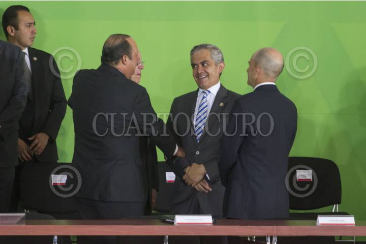 MÉXICO, D.F., 07ABRIL2015.- César Duarte Jácquez, gobernador de Chihuahua, Miguel Ángel Mancera, jefe de Gobierno del Distrito Federal, y José Antonio González Anaya, titular del IMSS, durante la conmemoración del Día Mundial de la Salud. FOTO: ISAAC ESQUIVEL /CUARTOSCURO.COM