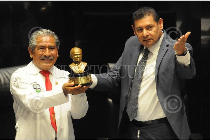 De manos del presidente de la Mesa Directiva del Senado, Alejandro Armenta, el Dr. Guilebaldo Cruz Cortés recibió el reconocimiento Jesús Kumate.