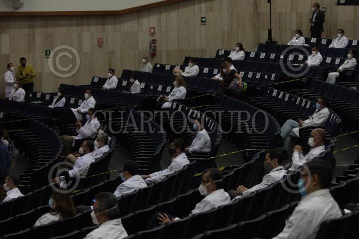 Médicos del Hospital Centro Médico Nacional Siglo XXI durante la ceremonia con motivo del Día Internacional del Médico
