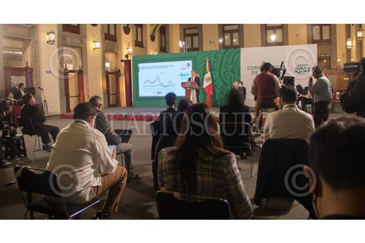 El Presidente Andrés Manuel López Obrador, en la conferencia de prensa de cada mañana, hoy con el Pulso de la Salud.