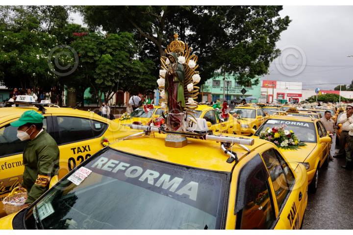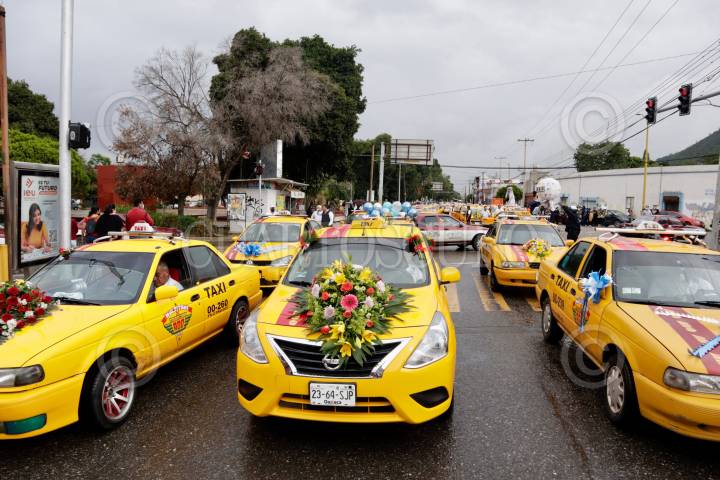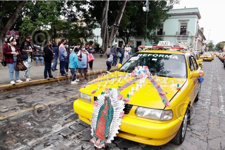 Mil cien taxistas salieron en caravana por el centro de Oaxaca con dirección a la iglesia de la Virgen de Guadalupe para conmemorar su día.