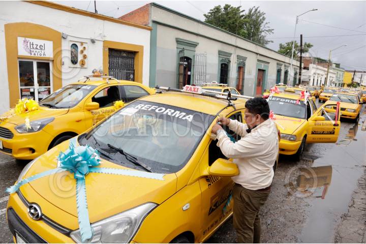 Decenas de taxistas salieron a las desfilar por las calles de Oaxaca para celebrar el Día del Taxista