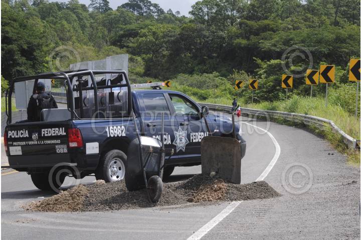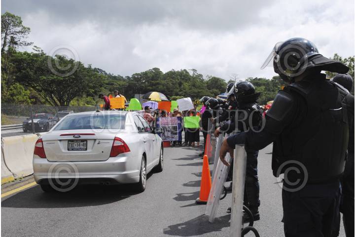 CHILPANCINGO, GUERRERO, 25SEPTIMBRE2015.- Alrededor de 300 habitantes de la comunidad El Rincón de la Vía que pertenece al municipio de Chilpancingo, bloquearon la Autopista del Sol en el punto conocido como Agua de Obispo, para protestar contra Caminos y Puentes Federales (Capufe) acusando de contaminar una presa en esa comunidad. Los inconformes denunciaron que la empresa Compañía Contratista Nacional, contratada por Capufe para reabrir el túnel de Agua de Obispo en la Autopista del Sol, durante el colapso que sufrió por el paso de los fenómenos naturales Ingrid y Manuel en 2013, arrojó escombros a una cañada de un área natural protegida, afectando una presa natural que abastece de agua a esa comunidad. FOTO JOSÉ I. HERNÁNDEZ / CUARTOSCUROCOM