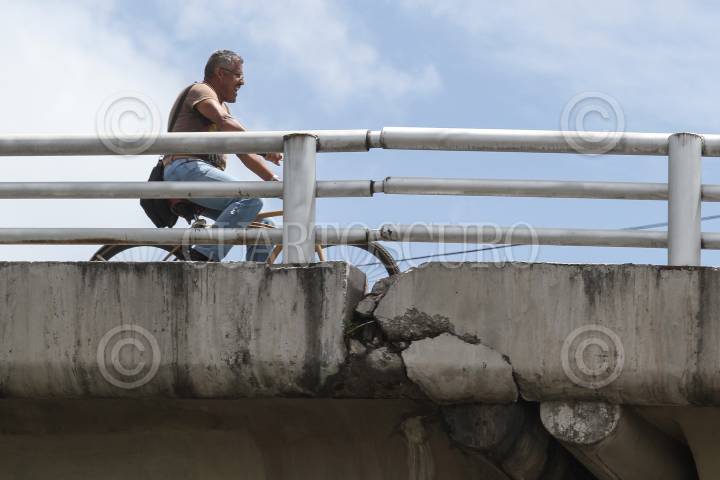 Hombre sobre su bicicleta recorre el puente vehicular Muyuguarda.