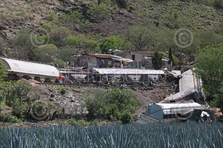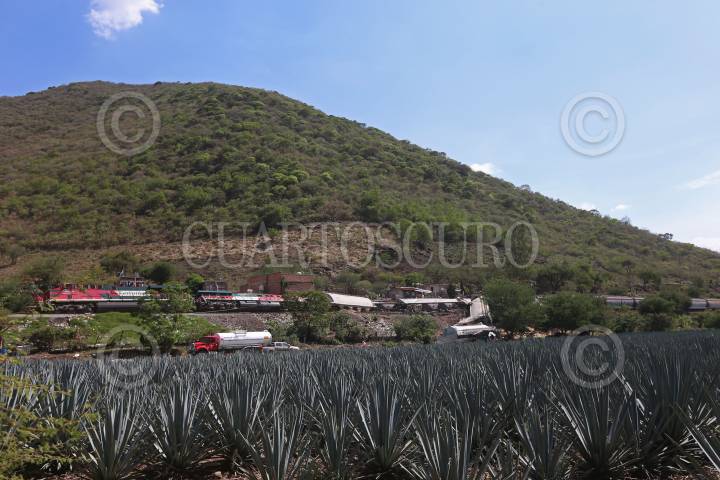 Imagen Panorámica del lugar donde se descarrilo un tren de carga en el municipio de San Isidro Mazatepec.