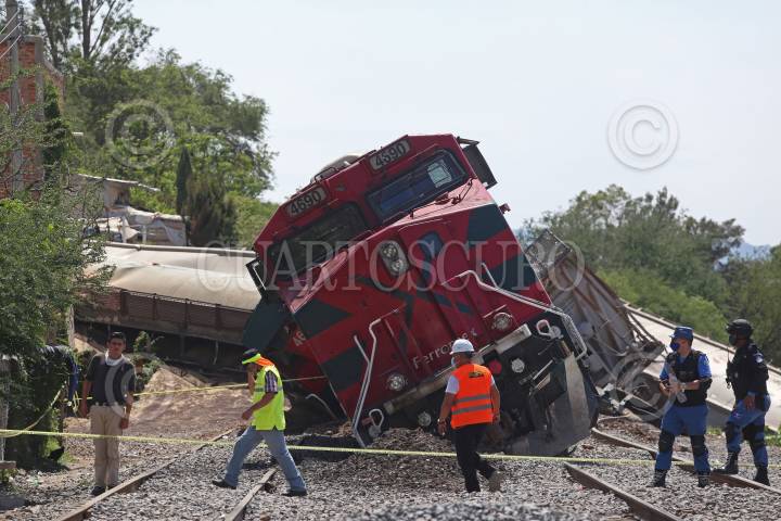 Imagen del lugar donde se descarrilo un tren de carga en el municipio de San Isidro Mazatepec.