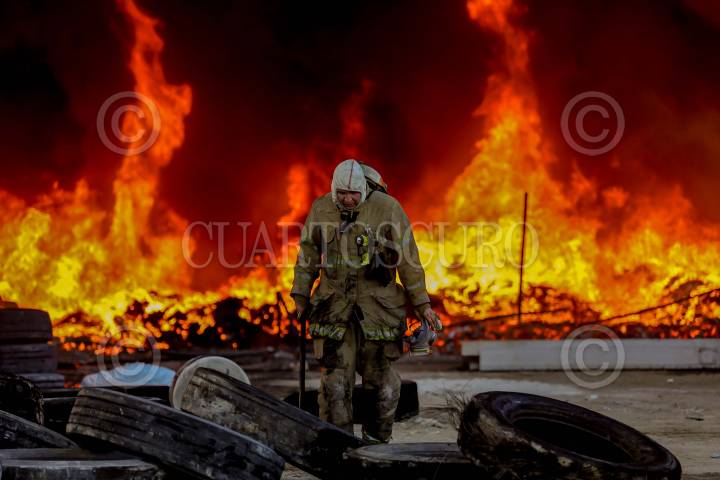 SALTILLO, COAHUILA, 03ABRIL2025.- Un incendio se registró la tarde de este jueves, al rededor de las 12:30 pm en una recicladora de plástico, en las inmediaciones de Saltillo y Ramos Arizpe Coahuila, ubicada muy cerca de la carretera antigua a Monclova, presuntamente fue provocado por un tanque de gas, hasta el momento no hay personas heridas, solo cuantiosos daños materiales, bombeos, protección civil y sedena siguen trabajando en el lugar para sofocar el siniestro. El incendio se puede apreciar desde cualquier punto de la capital coahuilense. FOTO: ALEJANDRO RODRÍGUEZ/CUARTOSCURO.COM