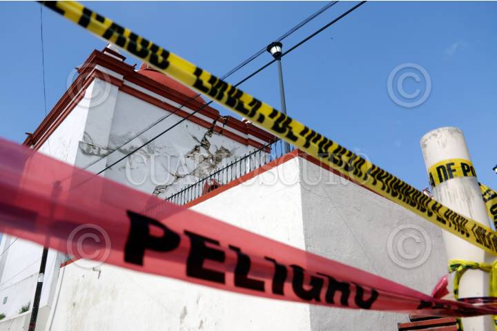 Trabajadores de Uruapan, Michoacán, laboran para retirar y reparar los daños ocasionados por el sismo de 6.9 grados Richter, ocurrido durante la madrugada.
