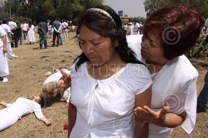 MÉXICO, D.F., 21MARZO2009.- Con motivo del día de la primavera cientos de personas acuden a las zona arqueológica de Cuicuilco a recargarse de energía alguna hacerse limpia o en dado caso una curación. FOTO: SÁSHENKA GUTIÉRREZ/CUARTOSCURO.COM