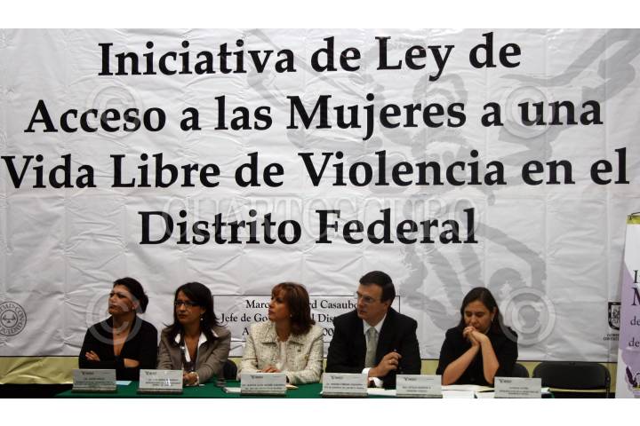 MÉXICO,D,F.,26SEPTIEMBRE2007.- Dafne Cuevas,Representante del consorcio para el diálogo parlamentario y la equidad de género, Ana Lorena Delgadillo representante de la procuraduria general de justicia,Matha Lucia Micher Directora general del instituto de las mujeres,Marcelo Ebrard Jefe de gobierno del Distrito Federal,Leticia Bonifaz consejera jurídica, durante la iniciativa de ley de acceso de las mujeres a una vida libre y sin violencia. FOTO:SASHENKA GUTIERREZ/CUAROTSCURO.COM