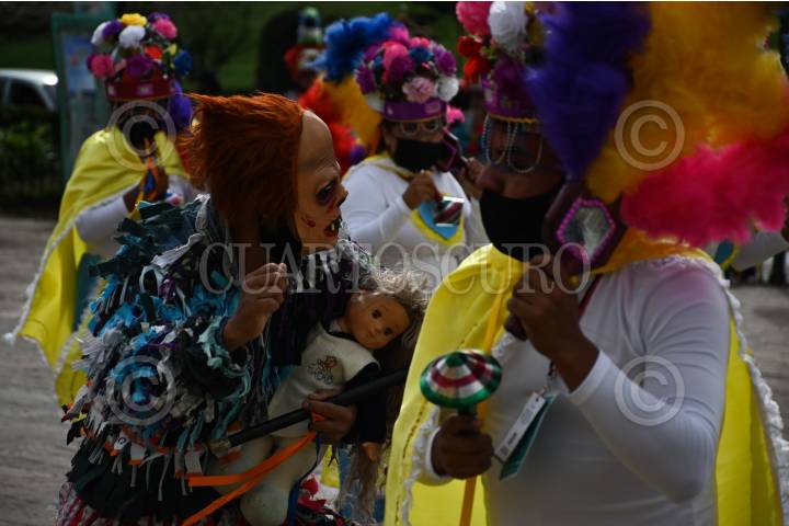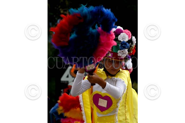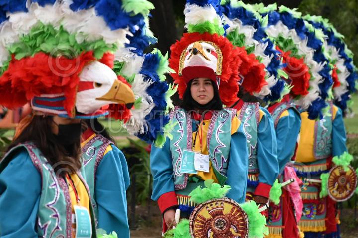 Una joven espera a iniciar la práctica de la danza tlaxcalteca.