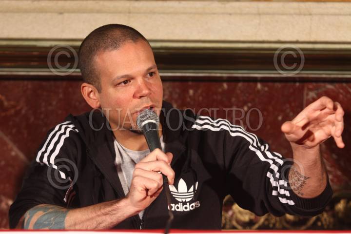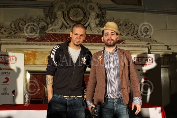 MÉXICO, D.F., 04NOVIEMBRE2010.- El grupo puertoriqueño de música urbana Calle 13 integrado por Residente y Visitante ofrecieron una conferencia de prensa para dar a conocer su mas reciente sencillo titulado Vamos a Portarnos Mal y en donde ofrecieron detalles de su próxima presentación el 29 de noviembre en el Teatro Metropolitan. FOTO: RODOLFO ANGULO/CUARTOSCURO.COM