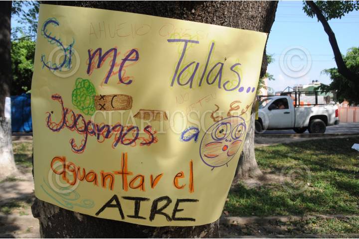 VILLAHERMOSA, TABASCO, 17MARZO2011.- Pobladores de la zona industrial, iniciaron ayer una protesta ambientalista en defensa de unos mil 200 árboles que serán derribados por las autoridades locales para dar paso a obras de ampliación de una avenida de ocho carriles. Las obras contemplan la tala de árboles con más de 35 años de antigüedad en una extensión de 11 mil metros cuadrados. FOTO: MARCO POLO GUZMÁN HERNÁNDEZ/CUARTOSCURO.COM