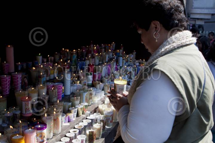 MÉXICO, D.F., 31DICIEMBRE2011.- Cientos de personas acuden este último día del año a la Basílica de Guadalupe a prender una veladora y a bendecirlas para dar gracias por el año que termina y pedir bendiciones para el año 2012 que apenas comenzará. FOTO: RODOLFO ANGULO/CUARTOSCURO.COM
