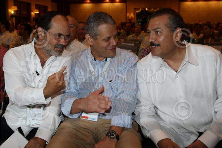 GUANAJUATO, GUANAJUATO, 23ABRIL2010.- Los senadores Gustavo Madero y Manlio Fabio Beltrones, durante el evento donde se darán a conocer los festejos del centenario y bicentenario de la República. FOTO: CUARTOSCURO.COM
