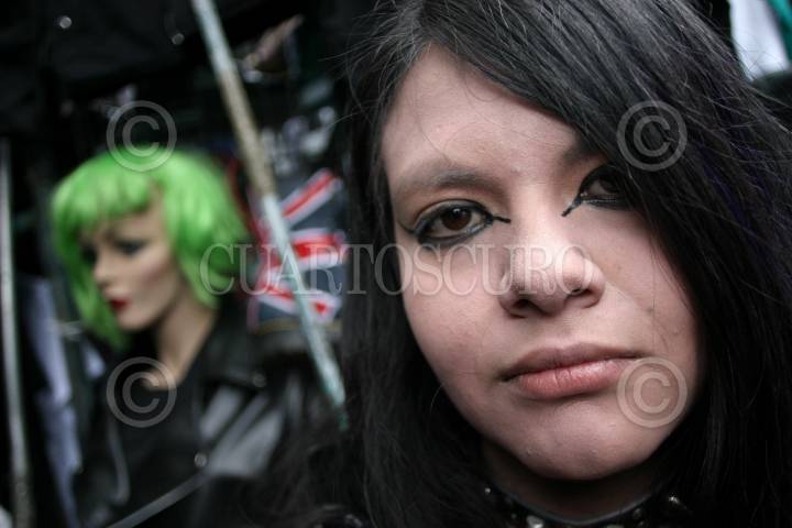 MÉXICO, D.F., 14AGOSTO2010.- Una chica de las llamadas "Darketas" posa para la cámara en el Tianguis Cultural del Chopo. Diferentes tipos de tribus urbanas suelen reunirse en este tianguis. El próximo 4 de octubre el tianguis cumplirá 30 años de haber sido abierto por primera vez. FOTO: MISAEL VALTIERRA/CUARTOSCURO.COM