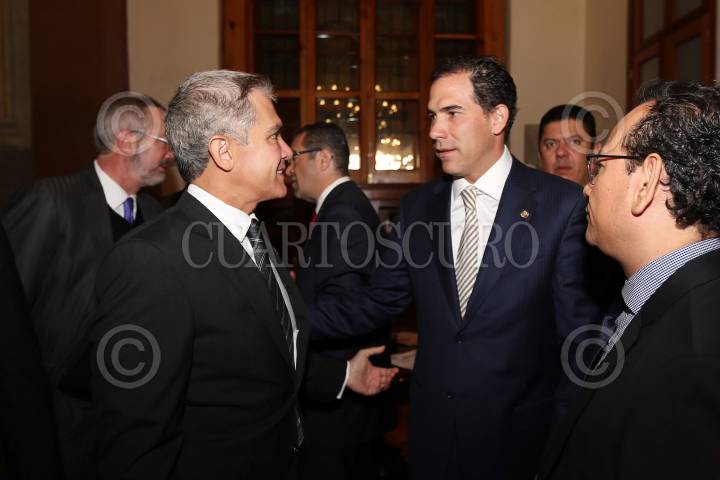 CIUDAD DE MÉXICO, 26ENERO2017.- Miguel Ángel Mancera, jefe de Gobierno de la Ciudad de México y Pablo Escudero Morales, Presidente del Senado de la República, durante la ceremonia de conmemoración del Día Internacional de Protección de Datos Personales 2017. FOTO: CUARTOSCURO.COM