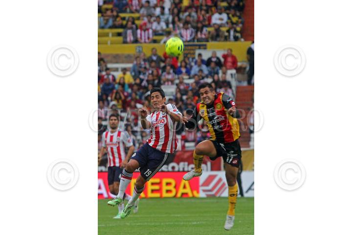 GUADALAJARA, JALISCO. 25ENERO2015.- El jugador de Chivas David Toledo y el jugador de Leones Negros, Luis Téllez disputan el balón durante el partido entre Leones Negros de la Universidad de Guadalajara y las Chivas de Guadalajara en el Estadio Jalisco, en encuentro correspondiente a la Jornada 3 del Torneo Clausura 2015 de la Liga MX, donde el marcador final fue 1-1. FOTO: FERNANDO CARRANZA GARCIA/CUARTOSCURO.COM