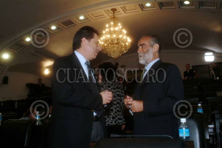 Jesús Ortega y Diego Fernández de Cevallos conversan al termino de la sesión del senado de la República. FOTO: Nelly Salas/CUARTOSCURO.COM