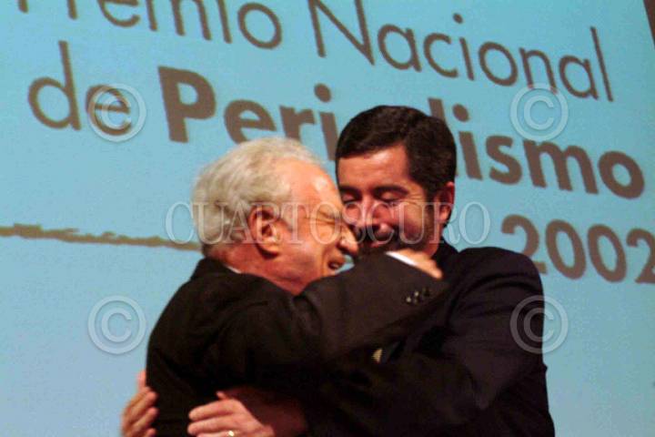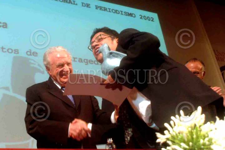 Juan Ramón de la Fuente, rector de la Universidad Autonoma de México, (UNAM) junto con el periodista Julio Scherer hicieron entrega del Premio Nacional de Periodismo en el área de fotografía a Daniel Aguilar de la agencia Reuters, por su reportaje de San Salvador Atenco. FOTO: Eunice Adorno/CUARTOSCURO.COM
