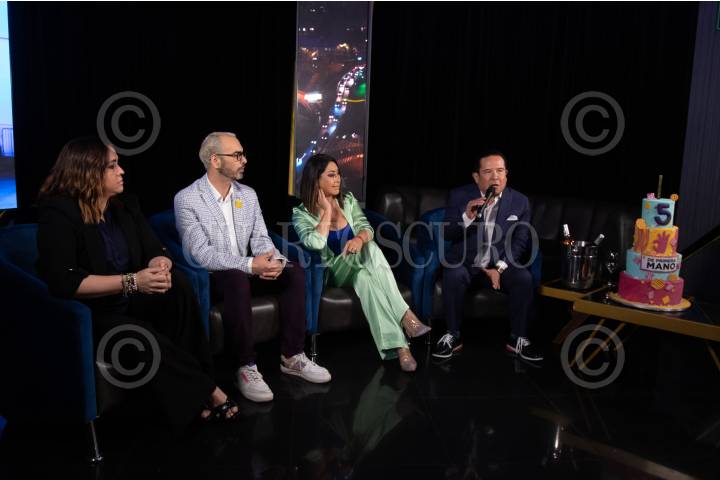 Los conductores de Primera mano Gustavo Adolfo Infante, Addis Tuñón durante conferencia de prensa por los 5 años del programa al aire.