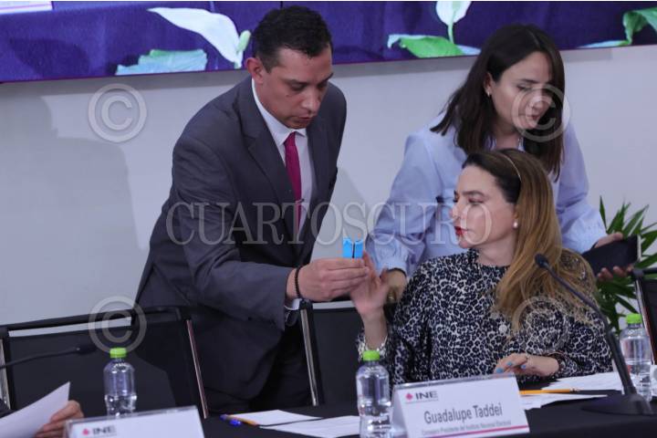 CIDAD DE MÉXICO, 25ABRIL2024.- Se realizó el sorteo y entrega de las preguntas ciudadanas a Adriana Pérez Cañedo y Alejandro Cacho, quienes moderarán el Segundo Debate Presidencial. Los trabajados estuvieron presididos por Carla Humphrey Jordan, presidenta de la Comisión del Registro Federal de Electores Comisión del Registro Federal de Electores del INE. FOTO: INE/CUARTOSCURO.COM