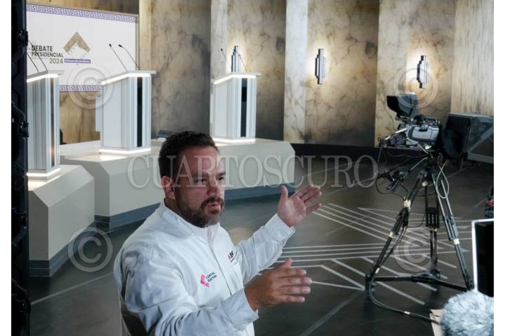 CIUDAD DE MÉXICO, 27ABRIL2024.- El consejero Martín Faz durante la conferencia previa al recorrido por las instalaciones del foro de los Estudios Churubusco donde sers el segundo debate presidencial.  FOTO: GALO CAÑAS/CUARTOSCURO.COM