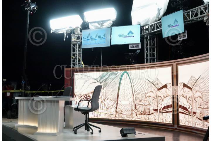 CIUDAD DE MÉXICO, 27ABRIL2024.- Aspectos del recorrido por las instalaciones de los Estudios Churubusco donde se realizará el segundo debate presidencial el domingo 28 de abril.  FOTO: GALO CAÑAS/CUARTOSCURO.COM