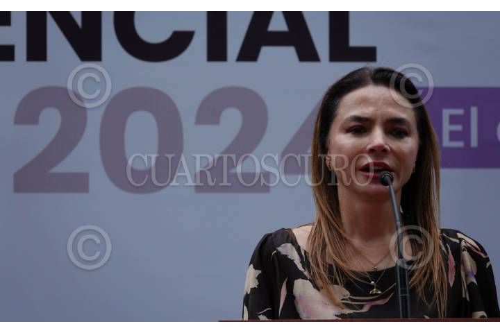CIUDAD DE MÉXICO, 27ABRIL2024.- La consejera Carla Humphrey durante la conferencia previa al recorrido por las instalaciones del foro de los Estudios Churubusco donde sers el segundo debate presidencial.  FOTO: GALO CAÑAS/CUARTOSCURO.COM
