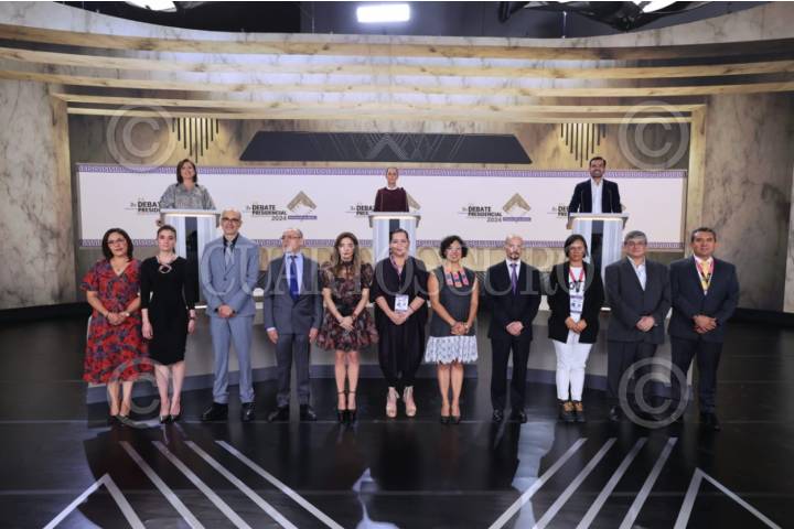 CIUDAD DE MÉXICO, 19MAYO2024.- Las candidatas presidenciales Claudia Sheinbaum y Xóchitl Gálvez y el candidato Jorge Álvarez Máynez, participaron en el tercer debate por la Presidencia de la República, que en esta ocasión se realizó en el Centro Cultural Tlatelolco. FOTO: INE/CUARTOSCURO.COM