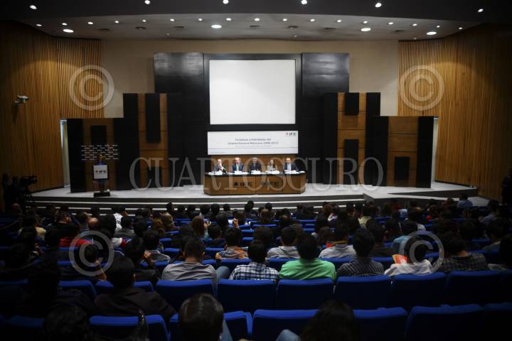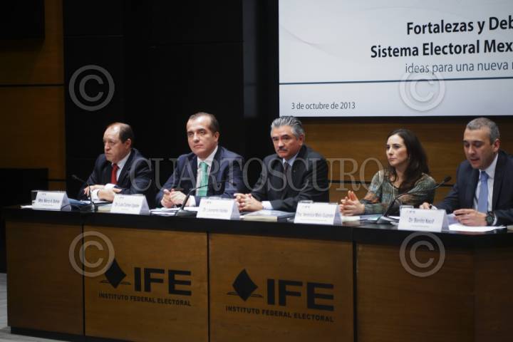 MÉXICO, D.F., 03OCTUBRE2013.- En el auditorio del IFE se presentó un balance sobre el estudio "Fortalezas y Debilidades del Sistema Electoral Mexicano" en el que se expusieron ideas para proponer una nueva reforma electoral. Asistieron Luis Carlos Ugalde es presidente del IFE y Leonardo Valdes Zurita presidente actual del IFE.Este estudio contribuirá para generar debate en una nueva reforma electoral misma que al llegar a aprobarse modernizaría el sistema actual permitiendo una actualización de las instituciones electorales. FOTO: AEJANDRO NEYRA /CUARTOSCURO.COM