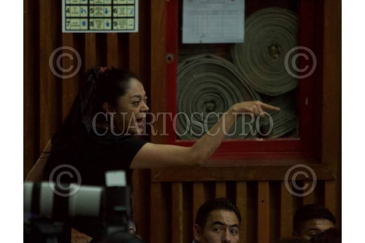 CIUDAD DE MÉXICO, 07AGOSTO2019.- Una mujer interrumpió en repetidas ocasiones el segundo debate entre los candidatos a la presidencia del PRI, principalmente cuando Alejandro Moreno hacía uso de la palabra, tachándolo de corrupto. FOTO: ROGELIO MORALES /CUARTOSCURO.COM